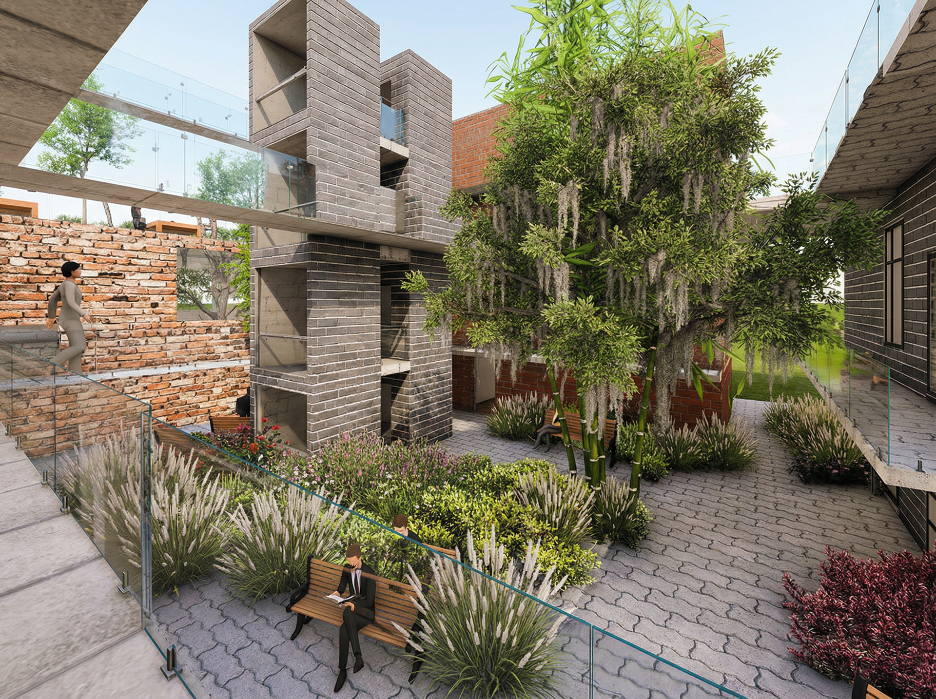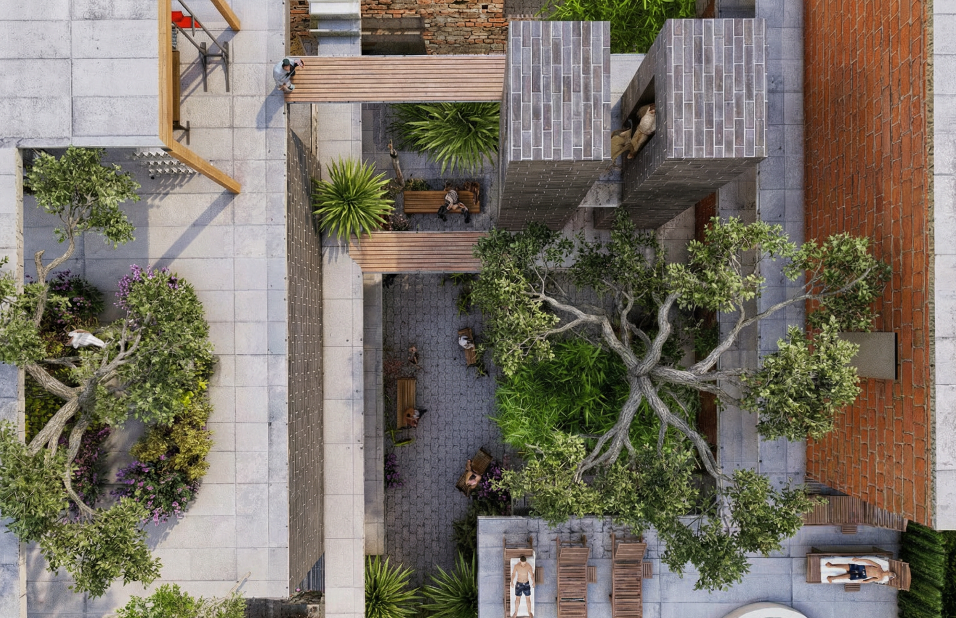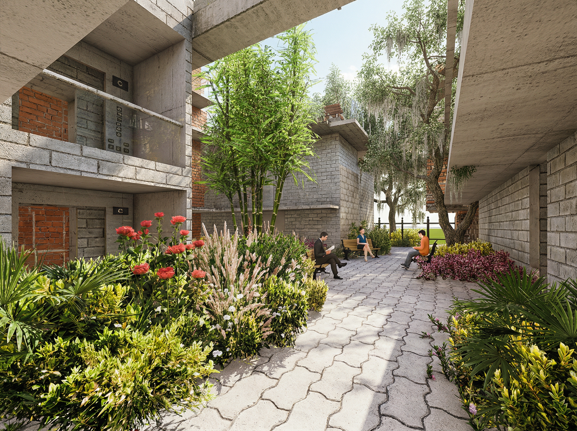 This apartment complex in Savannah, Georgia is designed as a city within a city, creating a residential environment that promotes community, safety, and comfort while maintaining a sense of openness. The project consists of five primary buildings connected by pedestrian pathways and anchored by a central circulation core, establishing a clear and active internal network. Drawing from Savannah’s historic urban fabric, the design translates the city’s orthogonal grid into the building organization while contrasting it with curvilinear forms inspired by the surrounding natural landscape. Native materials such as brick ground the project in its regional context, while its location along the Savannah River allows interior and exterior spaces to engage expansive waterfront views, reinforcing the connection between the built environment and nature.