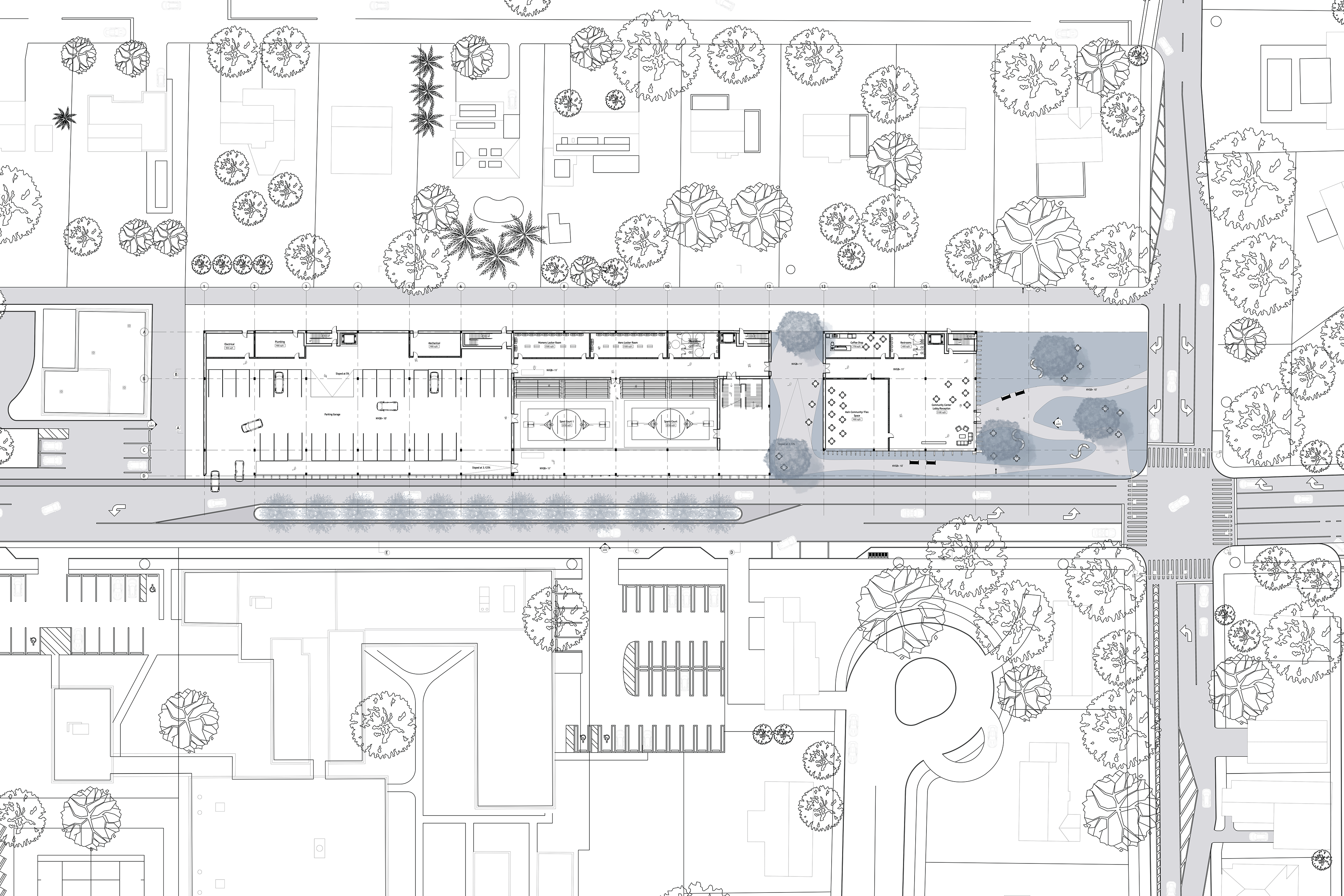 Designed for the City of Miami, this project reimagines the community center as a multi-generational civic hub where recreation, wellness, education, and social life intersect. The complex integrates three multi-use recreational courts, fitness and exercise spaces, locker rooms, and a spa, alongside a flexible community center with classrooms and event spaces serving local residents. A dedicated senior wellness center—comprising activity rooms, therapy spaces, exercise areas, and social gathering zones—anchors the project’s commitment to inclusive, lifelong wellness. Rather than separating users by age or function, the architecture promotes visibility, shared circulation, and overlap, reinforcing the building as a unified public asset that responds directly to South Miami’s social and cultural needs.